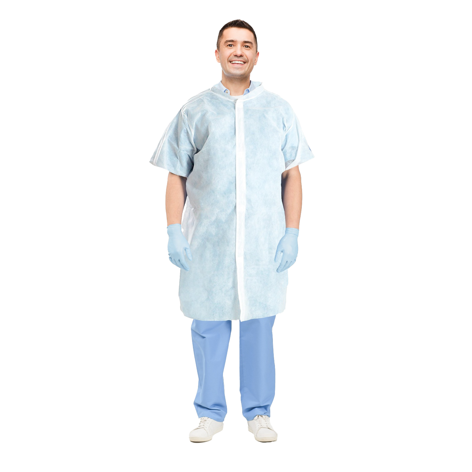 Confeccionada en tela no tejida de polipropileno SS de 17g color blanco, la Bata Visitante Biofit ofrece una combinación ideal de ligereza, comodidad y protección.